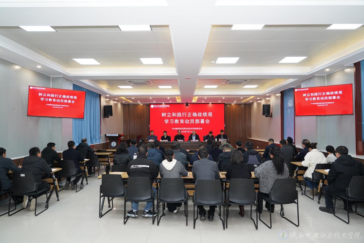 3月12日下午,陕西机电职业技术学院党委在蟠龙校区博学楼111会议室召开树立和践行正确政绩观学习教育动员部署会。党委书记伊逊智作动员讲话,党委副书记、校长侯晓方主持会议。