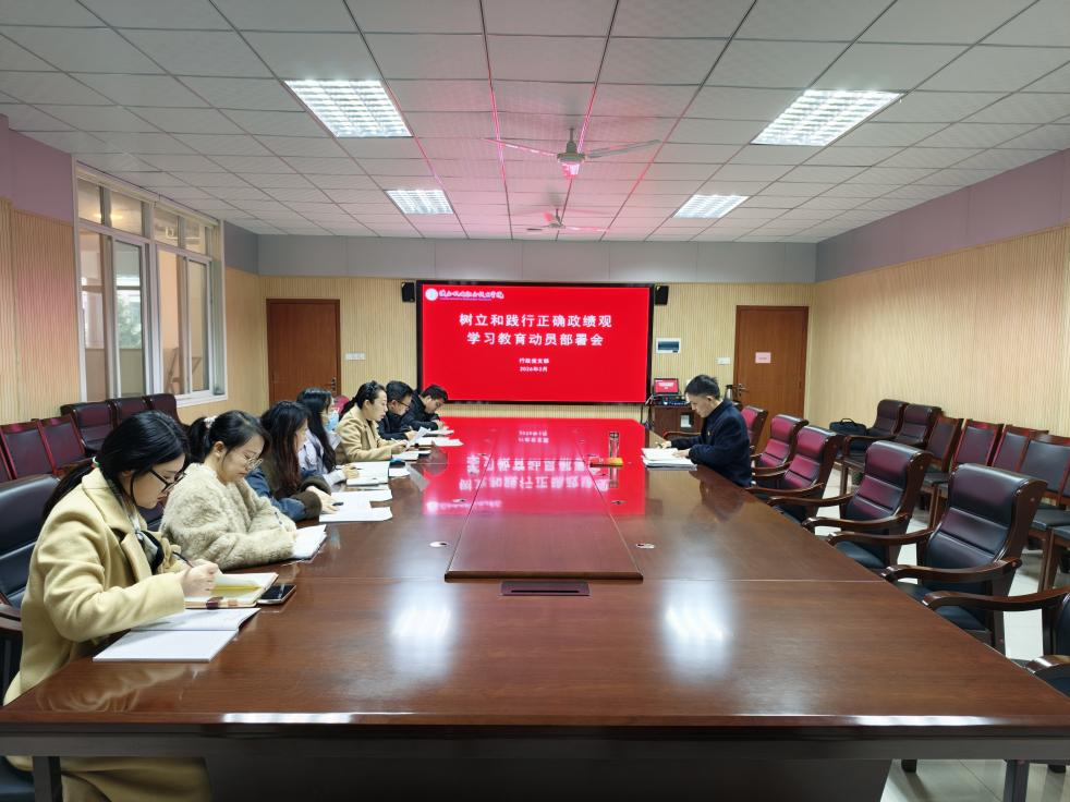 2026年3月13日,行政党支部在图书馆二楼召开集中学习会议暨“深学细悟铸忠诚 树立践行正确政绩观”主题党日活动,支部党员参加会议,会议由支部书记赵争东主持。